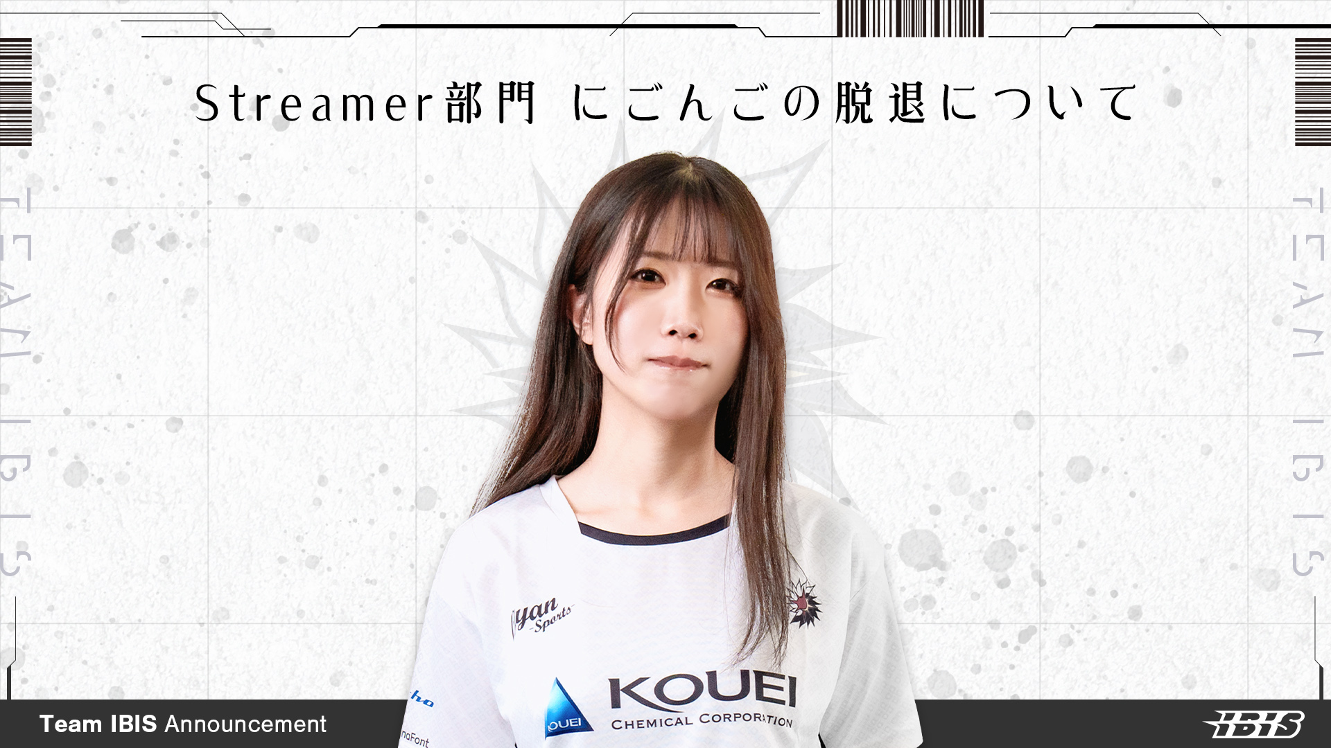 この度、10月21日付でSTREAMER部門のにごんごがチームを脱退する事をお知らせいたします。 ストリーマーとして日々配信にて数多くの人を魅了し、 また、大阪eゲームズ高等学院のアンバサダーとして活躍をしてくださいました。 今までのチームへの貢献に感謝するとともに、今後のご活躍を心からお祈りいたします。